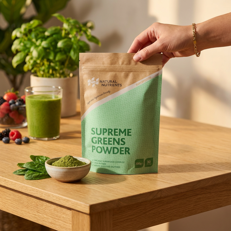 Nutrient-dense algae rich in protein, iron, and chlorophyll. Supports normal energy metabolism and antioxidant defence.